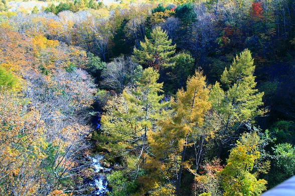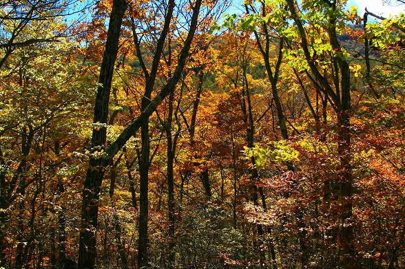 白駒池ドウダンツツジ紅葉は落葉が始まっています。近日の強風や雨が原因でしょう。 霜も降りているようです。今日も台風の影響か風が強く落葉していました。ただ、 まだ遠目は綺麗です。高原のモミジやドウダンの赤が目立ってきました。 |
