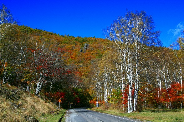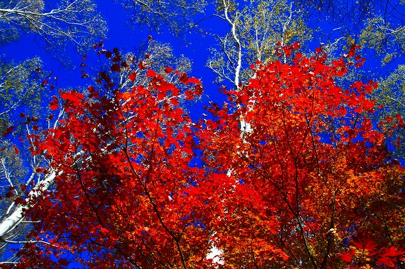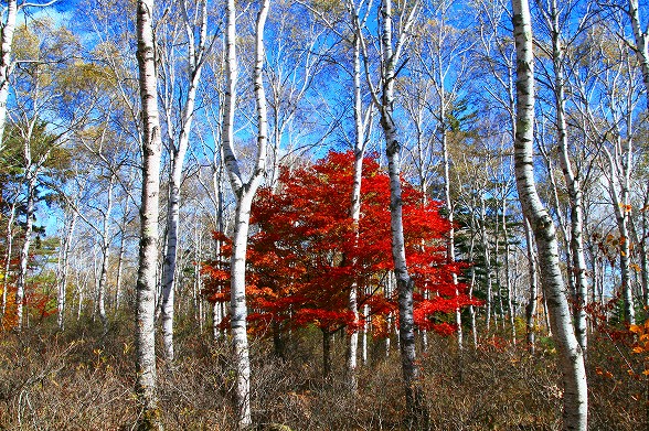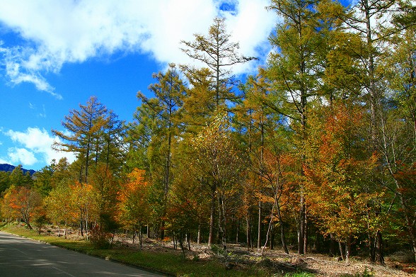 高原の紅葉が見頃になっています。レイク周辺の白樺は落葉盛んですがモミジは真っ赤に 紅葉しています。広葉樹全体の紅葉は少し低い駒出池周辺が見頃です。 駒出道では紅葉、黄葉が綺麗です。あと少しで落葉松黄葉が 見頃になって紅葉は終了です。 |