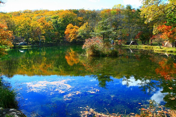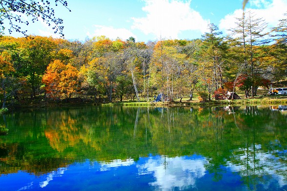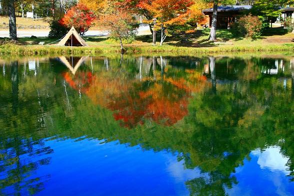 | 駒出池キャンプ場では紅葉真っ盛り |