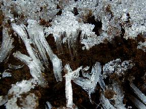 八千穂レイク周辺は霜柱が見頃だ。霜柱は雪が積もってしまうと見れない現象だ。