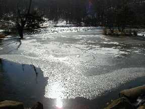 薄氷の張り始めた駒出池 |