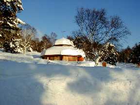 | 自然園上の白樺林、道路脇は雪の壁だ。 |