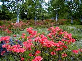| 八千穂レイク北側の白樺林とレンゲツツジが何とも美しい |