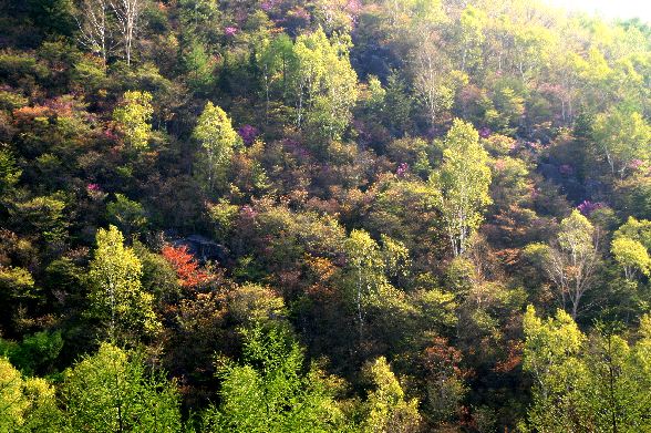 八千穂高原の代名詞白樺の芽吹きが高原全体に広がってきました。若草色の新緑は 今だけの光景です。また、駒出道ではヤマツツジがもうすぐ咲き出しそうですし、 駒出池湖畔の一番速く咲くミツバツツジも二輪ほど咲き出しました。 今年はヤマツツジとミツバツツジが同時に楽しめそうです。 |