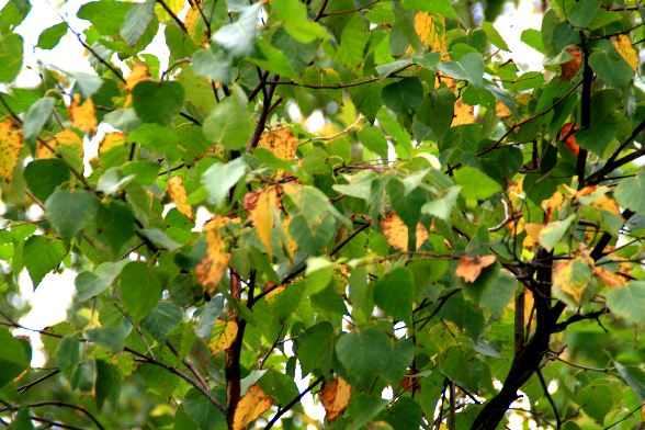| 白樺の木にはすでに黄色の葉も見えるようになってきました。 |