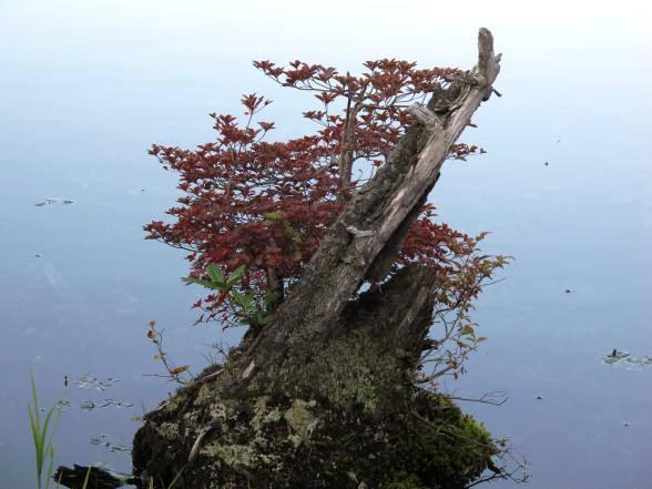 | 白駒池桟橋ではこんなかわいいドウダンツツジ紅葉を見つけました |