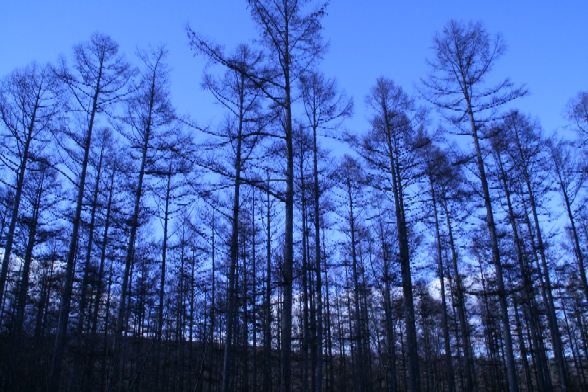 | 唐松も完全に落葉して霧の朝は霧氷のチャンスです |