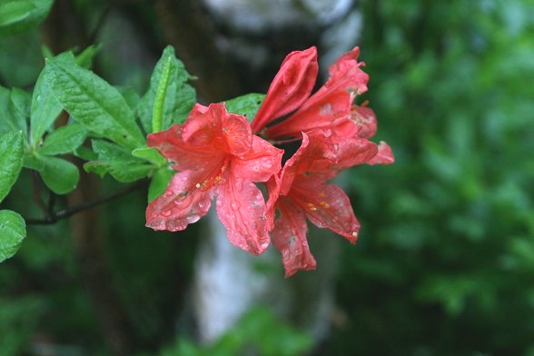 高原では3種類のツツジで最後のレンゲツツジが見頃になってきました。駒出池周辺では 見頃過ぎてきています。レイク北線の白樺林では見頃になってきました。 白樺林の白い幹、緑の葉、レンゲツツジの紅の組み合わせがとても 綺麗です。また、スズラン、アマドコロ、アヤメの咲き出しました。 かわいいベニバナイチヤクソウも見頃で今年は当たり年です。 |