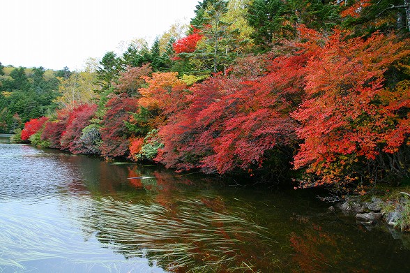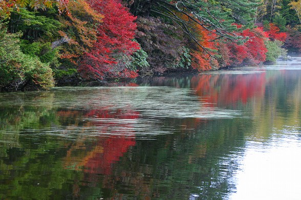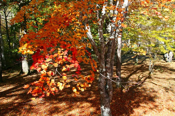 白駒池ドウダンツツジ紅葉は霜も降りて見ごろ過ぎてきましたがまだ綺麗です。 紅葉は高原全体に降りてきました。白樺の黄葉、真っ赤なモミジもあちこちで 見れます。落葉も盛んですが今が一番綺麗でしょう。落葉松の黄葉も 段々進んでいます。 |