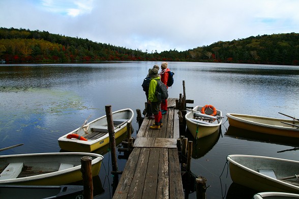 | 天気が良いので高見石も大勢でにぎわっているのが池から見える |