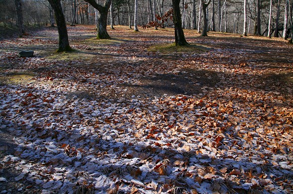 昨日は雪が舞っていよいよ真冬がすぐそこです。夜間や早朝の気温はマイナスになります。 氷、つらら、霜柱が目立つようになってきました。今月は霧の出た朝の霧氷が チャンスです。 |