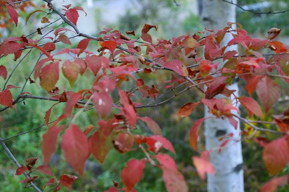 | 白駒池で一番初めに真っ赤になるドウダンツツジ |