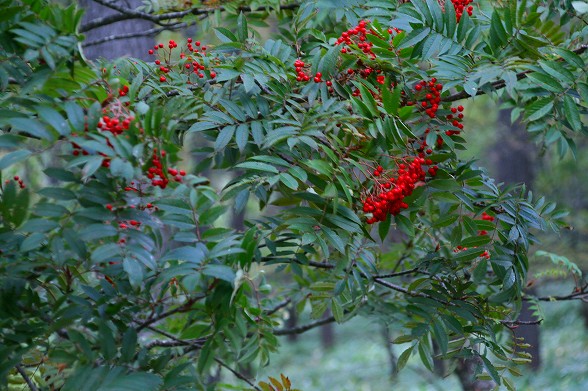 | 駒出池湖畔のツタウルシも黄色が混ざってきた |