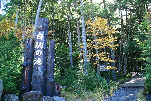 | 白駒池、すでにこんなに真っ赤なドウダンもある |