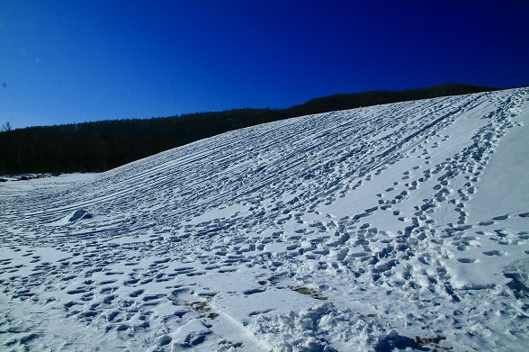 | レイク土手でのそり滑りの痕 |